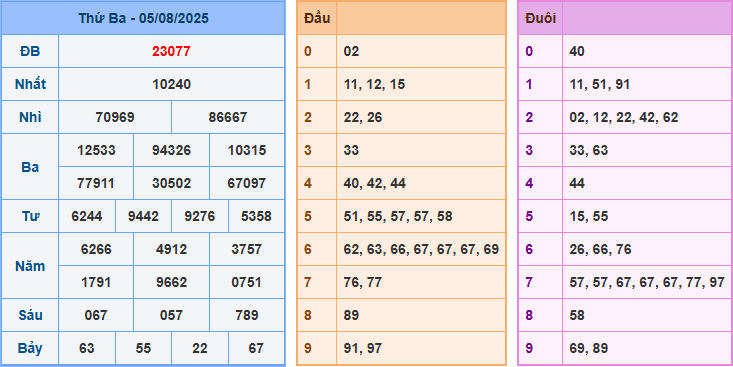 Trước khi đi vào dự đoán cầu lô đề miền bắc chúng ta cùng nhau xem lại bảng kết quả xsmb ngày 06/08/2025