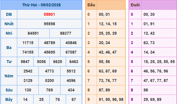 Trước khi đi vào dự đoán cầu lô đề miền bắc chúng ta cùng nhau xem lại bảng kết quả xsmb ngày 09/02/2026