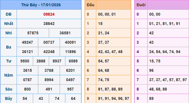 Trước khi đi vào dự đoán cầu lô đề miền bắc chúng ta cùng nhau xem lại bảng kết quả xsmb ngày 18/01/2026