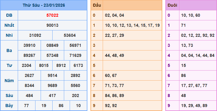 Bảng kết quả xsmb ngày 23/01/2026