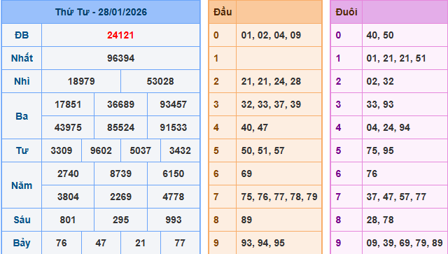 Trước khi đi vào dự đoán cầu lô đề miền bắc chúng ta cùng nhau xem lại bảng kết quả xsmb ngày 29/01/2026